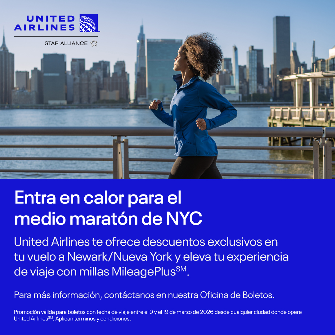 Si aún no tienes tu boleto aéreo para asistir a la United Airlines 1/2 Maratón de Nueva York contáctanos.
